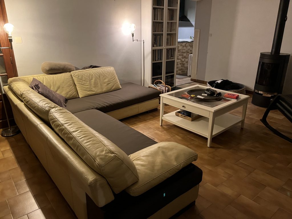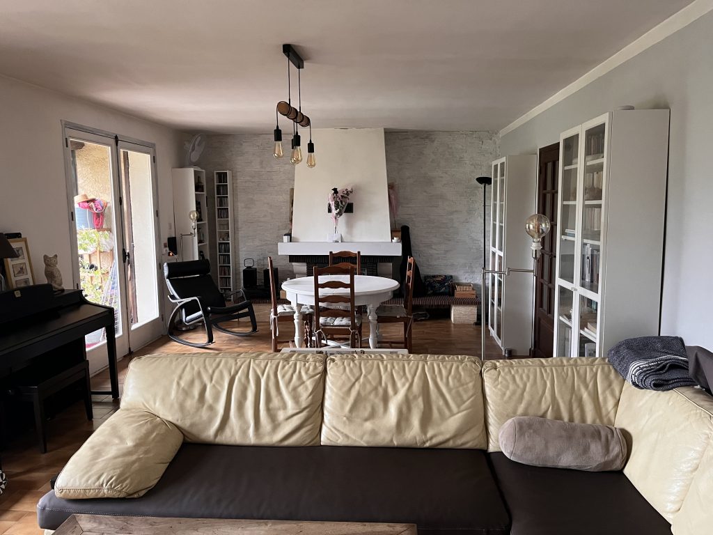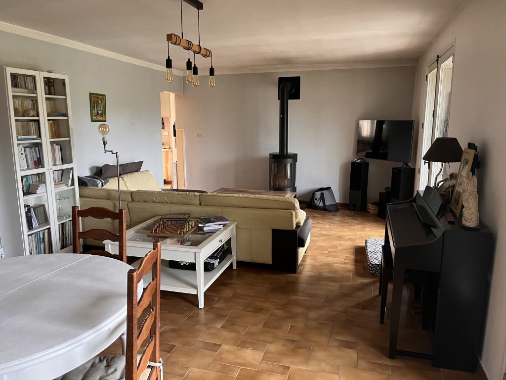 - un premier logement de type 4 d’environ 102 M2 sur vide sanitaire avec une spacieuse et lumineuse cuisine, trois chambres, salle de bain, une pièce à vivre de 40m2 avec poêle à bois et cheminée avec insert donnant sur une loggia de 14 m2 fermée qui donne elle-même sur une terrasse de 30m2 avec pergola plein sud ;