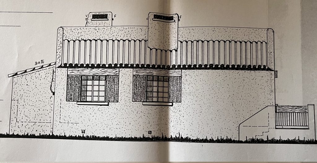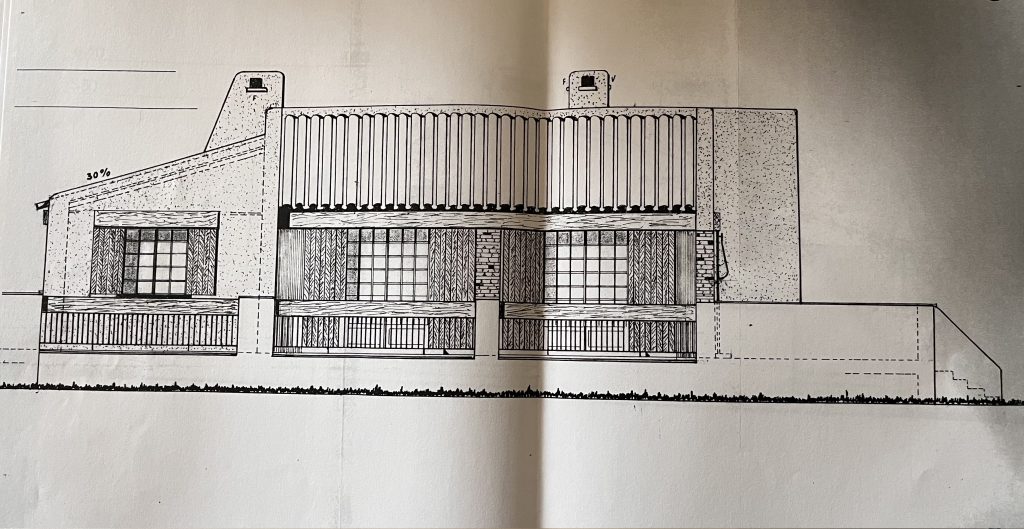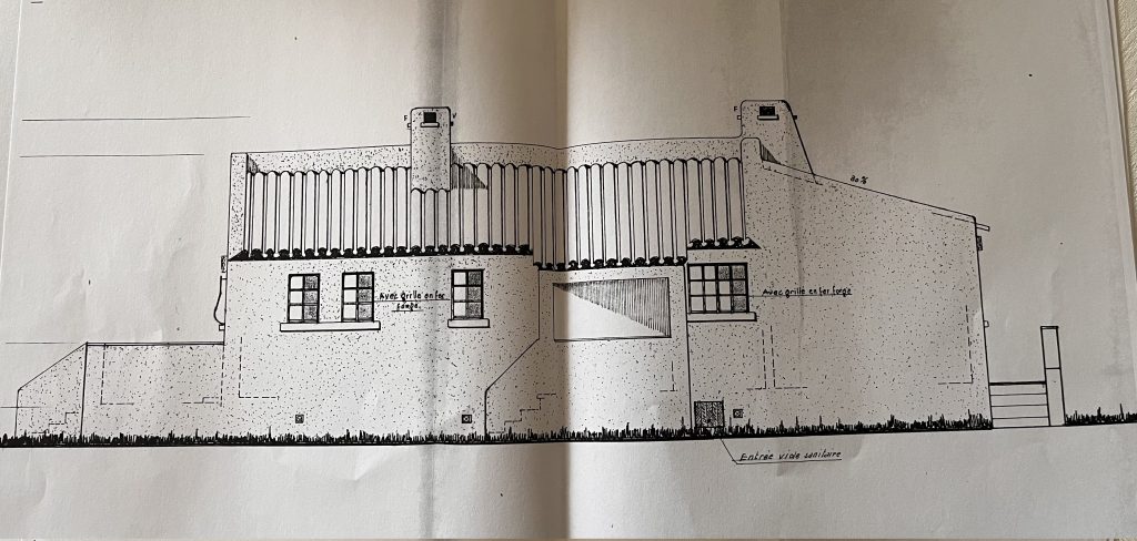Le bâti de construction traditionnelle (1978) de 128 m2 (surface utile pondérée) de plein pied se divise en deux parties :