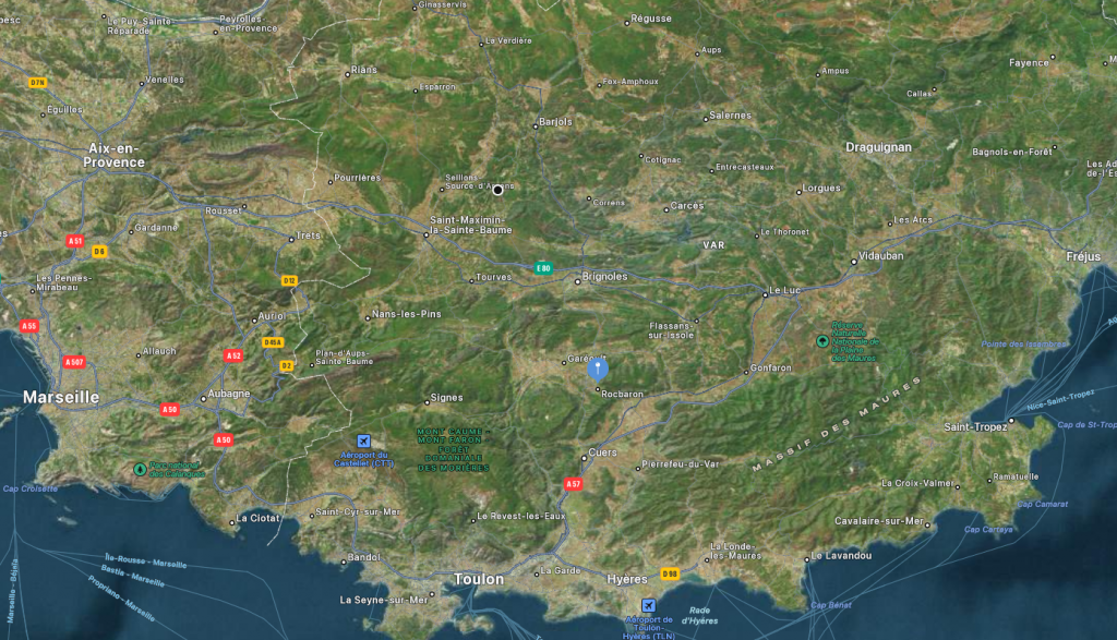 Un lieu idéal pour profiter des douceurs du sud tout en étant protégé du tumulte touristique de saison. Vous serez à la campagne, au calme en pleine Provence Verte à 30 mn de la mer (Toulon ou Hyères), à 20 mn de l’accès autoroute A8 pour vous rendre à Nice, Aix ou Marseille (Gare Aix-TGV et aéroport Marseille Provence à 1h, aéroport Nice Côte d’Azur à 1h30).